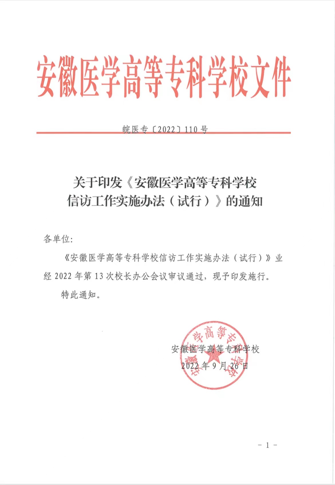 安徽医学高等专科学校信访工作实施办法(试行)