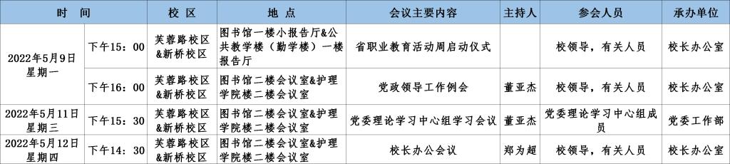 2021-2022学年第二学期第十二周学校会议(活动)安排(5月9日-5月15日)