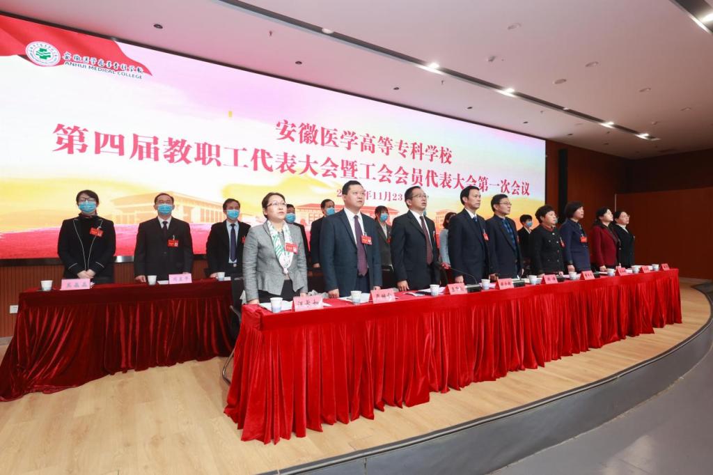 11月23日,开云官方端网站登录入口第四届教职工代表大会暨工会会员代表大会在新桥校区勤学楼一楼报告厅隆重召开。104名代表肩负着全校教职工的期待和重托,汇聚一堂,共商学校发展大计。省卫生健康委二级巡视员周涛,校党委书记董亚杰,校党委副书记、校长郑为超,校党委副书记、直属附属医院(安徽省第二人民医院)党委书记王卉晓,校党委副书记、副校长王劲松,校党委委员、副校长王润霞、严继贵出席会议。