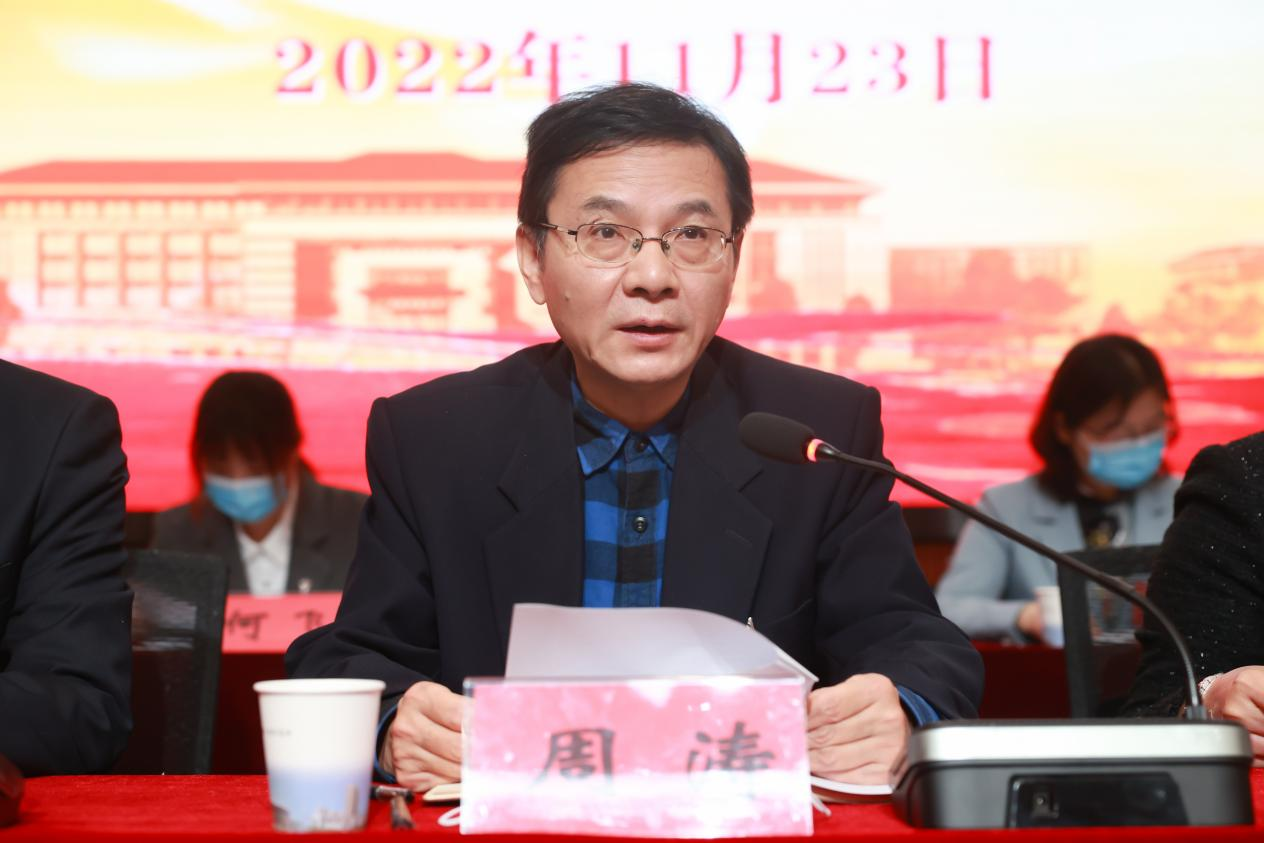 周涛代表省卫生健康委对大会的胜利召开表示祝贺。他表示,近年来,学校坚持党的全面领导,服务卫生健康事业需求,聚焦立德树人根本任务,聚力“建成新校区”和“建成应用型医学本科院校”两大发展任务,在基层党建、人才培养、教育教学、科技服务、师资队伍建设等方面取得了一系列国家级、省级标志性成果,为新时期学校高质量发展擘画了升本蓝图,学校整体办学影响力持续提升。周涛强调,要深入学习宣传贯彻党的二十大精神,筑牢思想根基,全力推动党的二十大精神落地生根;要坚持立德树人的根本任务,坚守育人初心,把握为党育人、为国育才、为中华民族伟大复兴事业培养合格建设者和接班人的要义,切实发挥作为“三全育人”综合改革试点的功能;要凝聚改革发展的精神动力,加快发展质效,努力开辟发展新领域新赛道、不断塑造发展新动能新优势,朝着更高更强的舞台迈进。