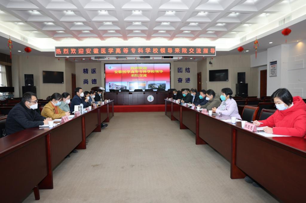 胡炳德对郑为超一行的到来表示欢迎,着重介绍了医院的发展历史、发展现状及未来发展的情况。胡炳德表示,安徽医学高等专科学校办学历史悠久、办学实力雄厚、办学特色鲜明,人才培养质量得到社会各界广泛认可,希望能与安徽医学高等专科学校进一步深入合作,共享资源,共同发展。