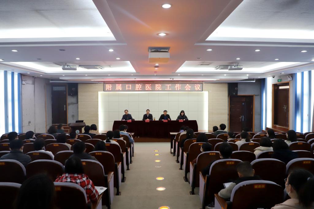 近日,开云官方端网站登录入口附属口腔医院工作会议在芙蓉路校区图书馆一楼小报告厅召开。校党委副书记、校长郑为超,校党委委员、副校长严继贵出席会议。附属口腔医院全体专兼职人员参加会议。