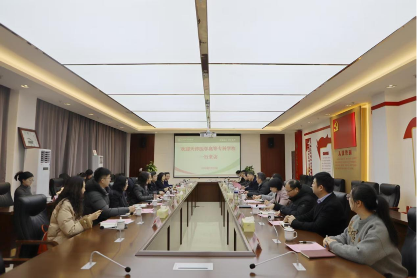 1月13日上午,天津医学高等专科学校党委副书记、校长张彦文一行来校考察交流。校党委副书记、校长吕雄文,校领导严继贵、潘焱焱等参加座谈。