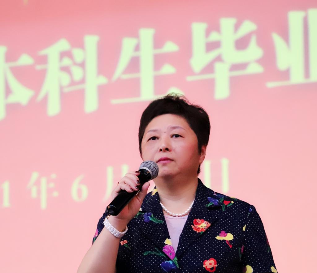 教师代表护理学院刘莉回顾了两年来与同学们相处的点滴,勉励同学们保持平和心态、脚踏实地,坚持学习,充实自己,学会做人做事,不断提高自己。