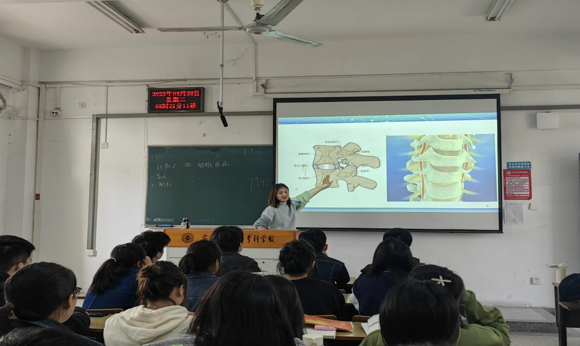 本次金骅老师的授课内容为《老年人常见骨关节疾病--任务2 颈、腰椎疾病》。课前,金老师做好了十足的准备,充分挖掘教材内涵,精心设计教学环节。在课堂上,她运用各种教学技巧,关注学生已有的知识经验,带领学生一步步的导入推进新的知识点,使学生在课堂上能够主动参与问答,互动和谐。因为本次授课对象未来工作面对的主体是老年人,在一些特殊检查手法的教学示范过程中教导学生在实际操作的时候要动作轻柔、缓慢,避免脱拉硬拽,要时刻关注老年人的感受以免造成不必要的伤害。课程结束后,每位听课老师都对本次课程做了详细的评课记录,对金老师的本次公开课做出了肯定和评价,指出了其教学中的不足之处并对亮点提出了表扬。