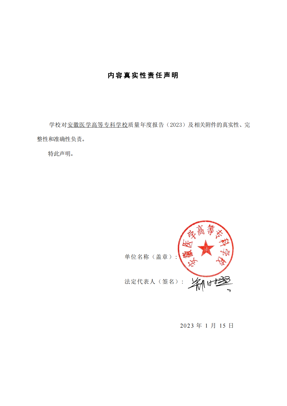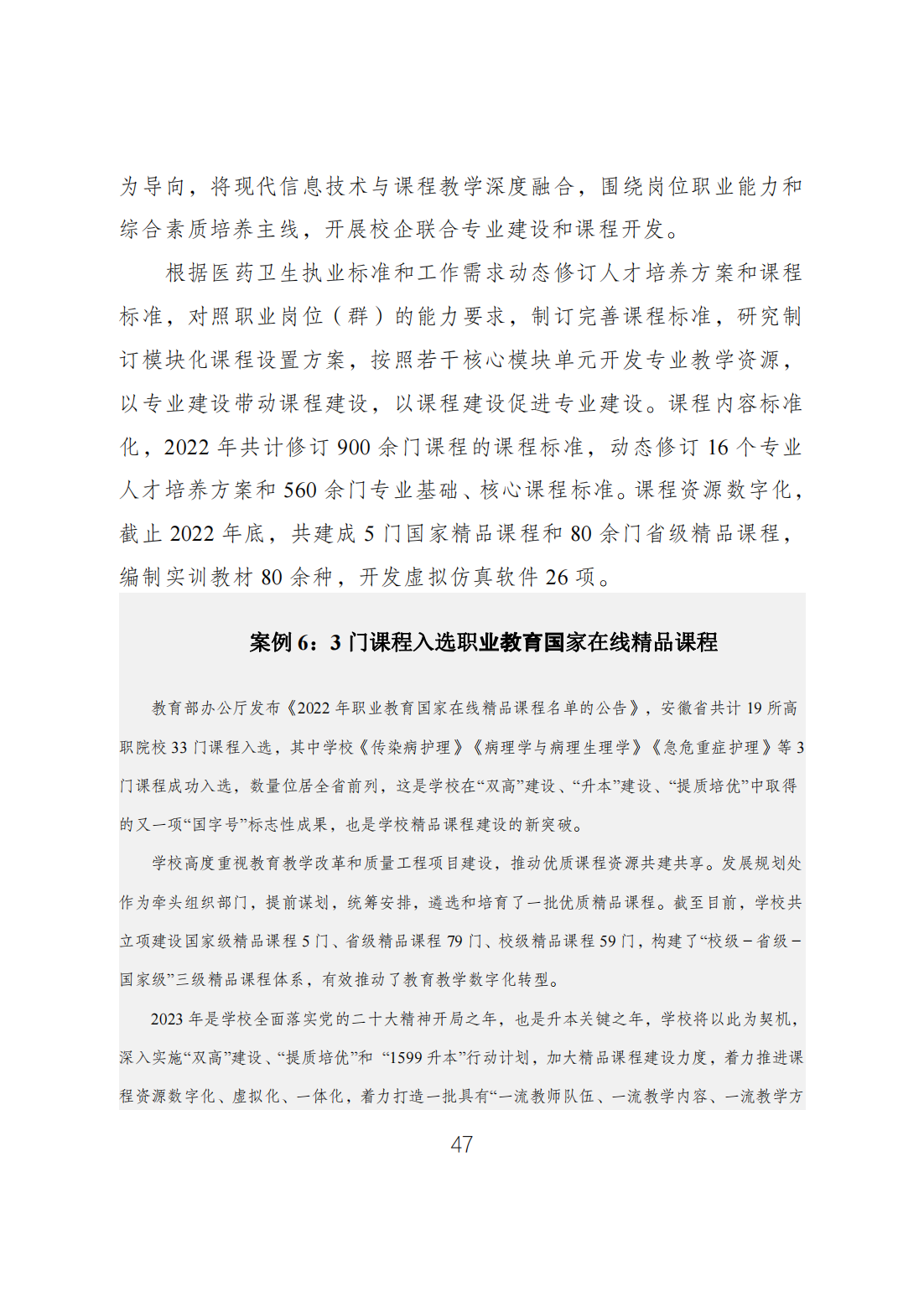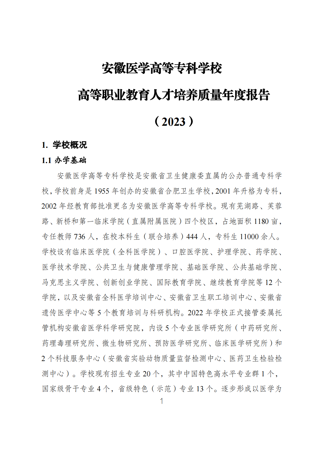 安徽医学高等专科学校高等职业教育质量年度报告2023