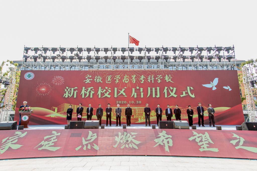 仪式上,高俊文宣布安徽医学高等专科学校新桥校区正式启用。各位领导与嘉宾推动启用杆,共同祝愿安徽医学高等专科学校的未来更加美好。(撰稿、审稿:党委工作部 姜楠 於莉 编辑:姜楠)
