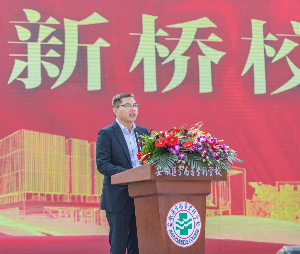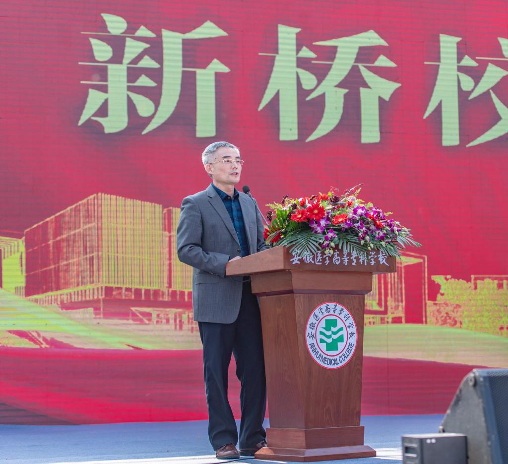 郑为超指出,新桥校区的启用是安徽医学高等专科学校事业发展的重要转折点,是学校乘势而上、再创辉煌的全新起点。站在新起点,学校将以习近平新时代中国特色社会主义思想为指引,深入学习贯彻习近平总书记关于教育的重要论述及系列重要讲话精神和全国、全省教育大会精神,聚焦立德树人的根本任务,以更加自信、更加振奋、更加创新的姿态,在新桥校区抒写转型升级的奋斗史,把65年办学底蕴和“厚德精医、博学笃行”校训精神在这里传承,把全体师生对学校发展的期盼与厚望在这里续写,把建成技能型高水平大学、推进“双高计划”和建设具有特色的应用型医学本科院校在这里延伸,坚持服务国家战略、服务长三角一体化高质量发展,为国家卫生健康事业发展和新时代美好安徽建设作出积极的贡献。